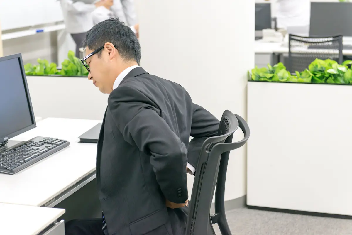 デスクワークやテレワークなどでパソコン画面に集中するあまり猫背姿勢になってしまうと骨格のバランスが崩れ腰痛に繋がることもあります。